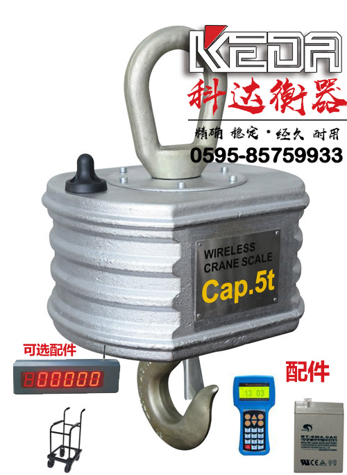 7、配有無(wú)線遙控器,20米范圍內(nèi)可控制吊秤的置零,查詢(xún)稱(chēng)重記錄和關(guān)機(jī)等功能;